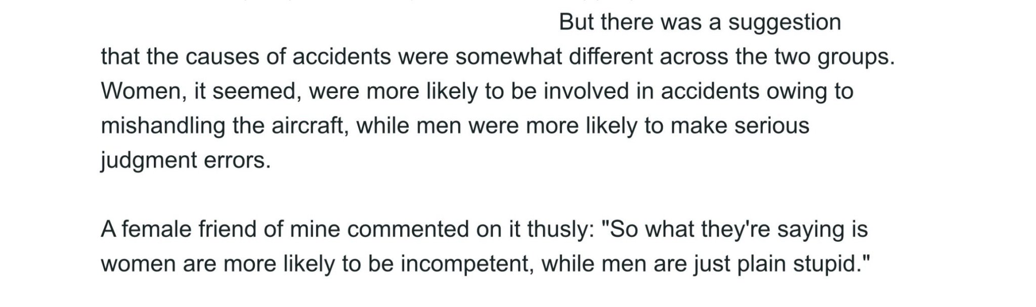im disappointed she isnt a  trans woman pilot, I see the usual crap of every man being a misogynist rears its  ugly  head, they just cant help themselves can they.