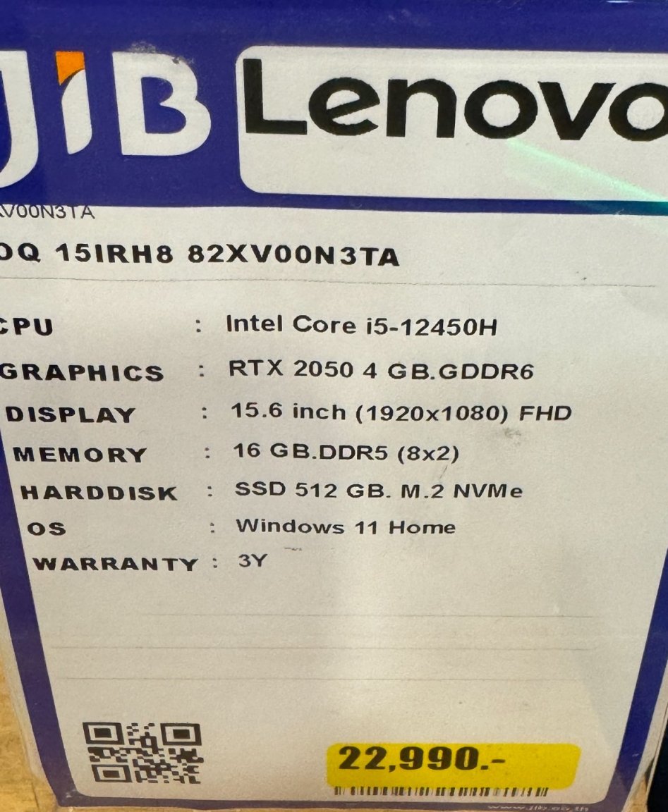 June 30, 20241 yr 12 minutes ago, novacova said: We were at airport central this morning and this was sitting in the jib shop… Anyway, best of luck Full spec: https://psref.lenovo.com/Detail/2301?M=82XV00N3TA At that price point, there is also this: https://www.lazada.co.th/products/asus-vivobook-pro-15-d6500qe-hn701w-156-inch-gaming-and-creator-laptop-fhd-ips-144hz-amd-ryzen-7-5800h-16gb-ddr4-nvidia-geforce-rtx-3050-ti-512gb-m2-nvme-pcie-30-ssd-wifi-6-fingerprint-i5022381965-s21592450230.html https://www.asus.com/th/laptops/for-home/vivobook/vivobook-pro-15-d6500-amd-ryzen-5000-series/ Better graphics, but the Lenovo has the edge with a updated platform.