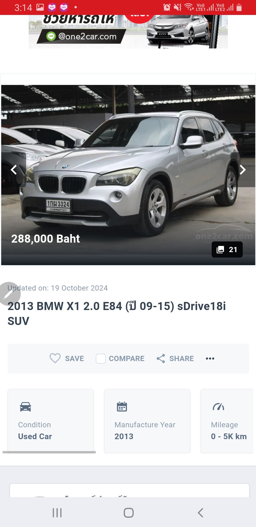 The mileage displayed in the ad (0-5k km), generally the seller chooses this option if they don't want to display the correct mileage.