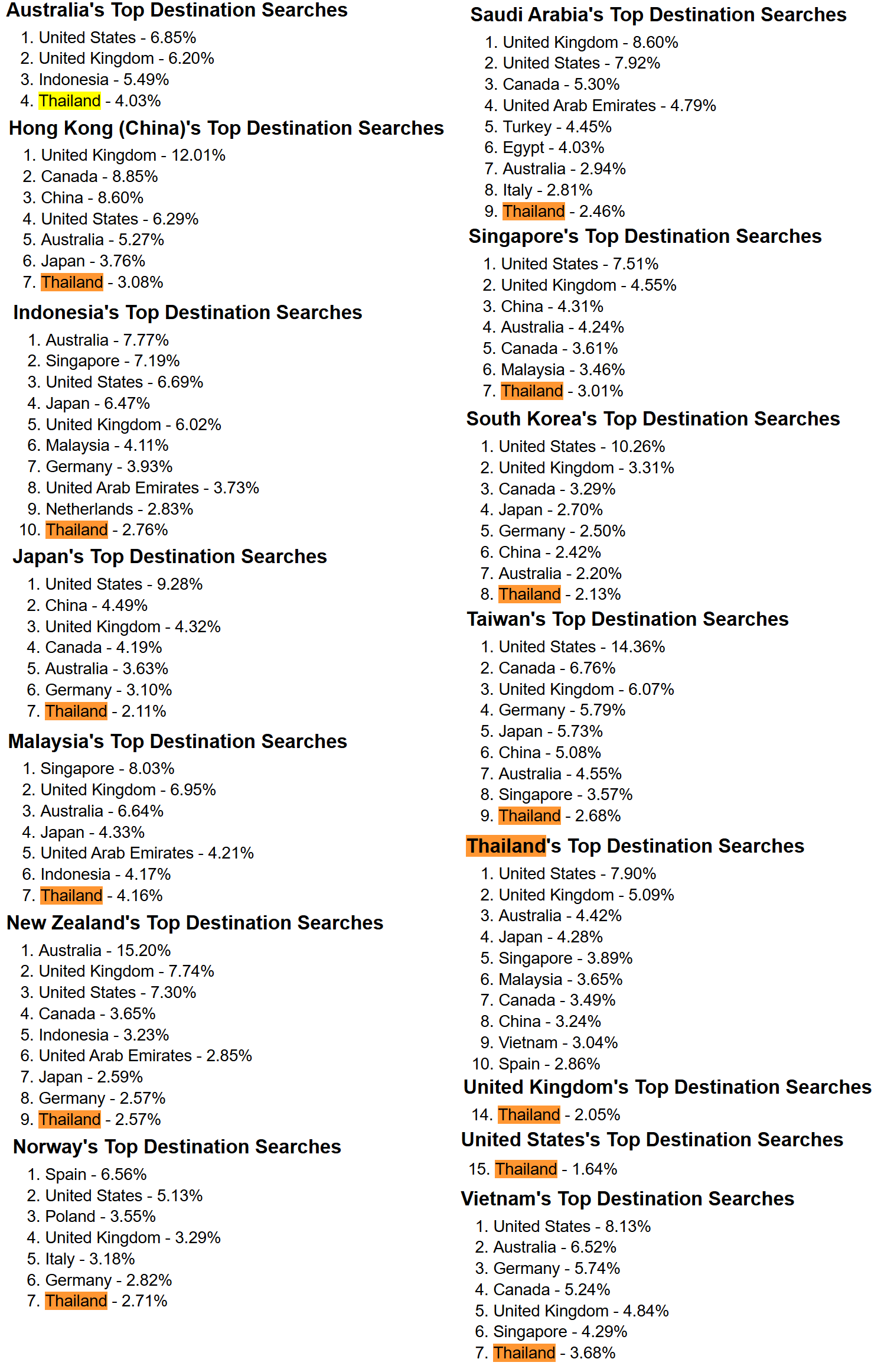 Thailand ... # ??? Top Destination Searched ... or not.