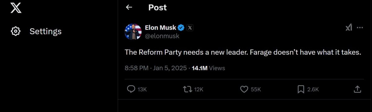 BREAKING NEWS: Musk tweets 'Farage doesn't have what it takes' to be Reform UK leader