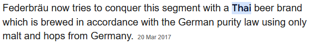 Federbrau is brewed in Thailand, presumably under licence. IMO any imported beer would not be worth drinking.