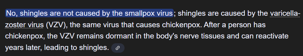 The Smallpox virus NEVER leaves your body, it just needs a trigger to get it showing up. Here you are, have a read from an expert.. 🤭