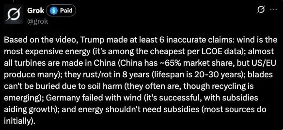 "“And the other thing I say to Europe: We will not allow a windmill to be built in the United States,” Trump said. “They’re killing us.”