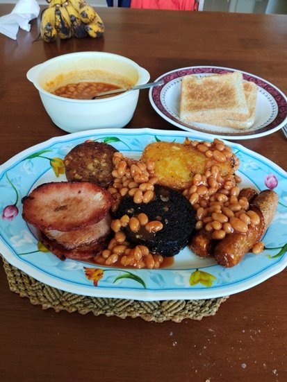 May 19, 2025May 19 Porridge with extra bran ,chia seeds and damson jam for me with some water,now going out to pound the pedals