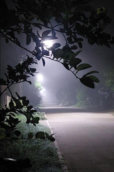 Sniffy wanted to sniff & mark some new turf.   This area drier than the rest, as still raining hard overnight here.  Raining now west of the house, as can't see the hills along Myanmar border, first 10 seconds of vid.