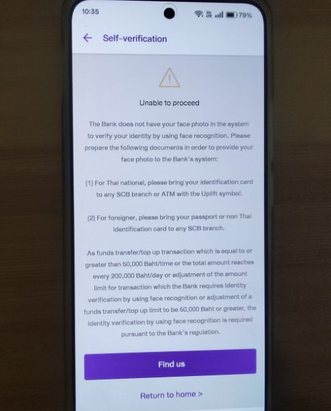 Yesterday, north of Bangkok, I went to SCB for facial scan recognition after receiving a message on the app. I visited the local branch with my pink ID that I opened the account with along with the bankbook. They took my photo, scanned my ID, and I just had to sign on their iPad — the whole process only took a few seconds. Everything is working now; I even tested it by transferring over 50,000 THB!!