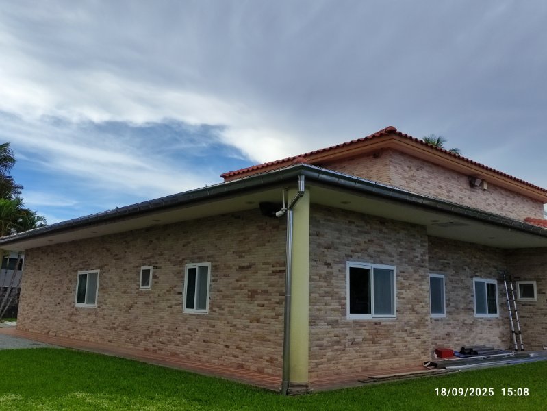 The installer who is doing the job now, hasn't set a foot on the roof yet, and he has all the right tools. Brackets are fitted rock solid, and gutters are all 6 meter lengths as agreed.