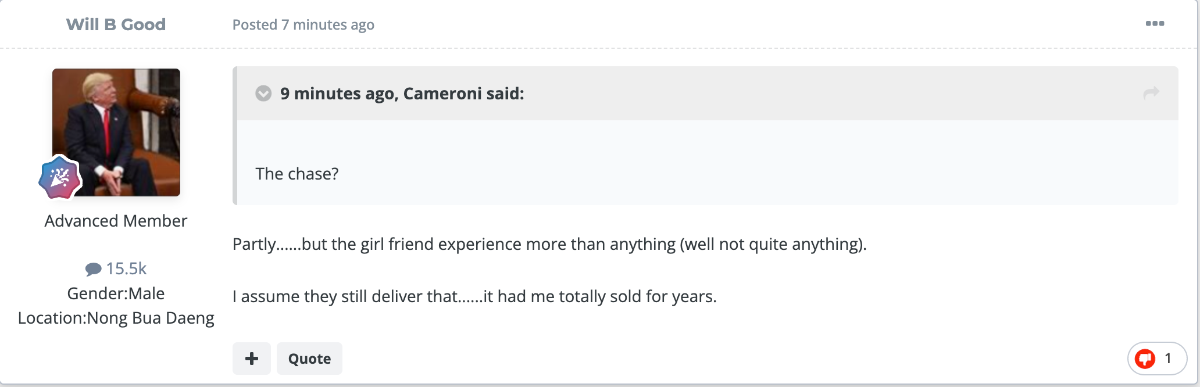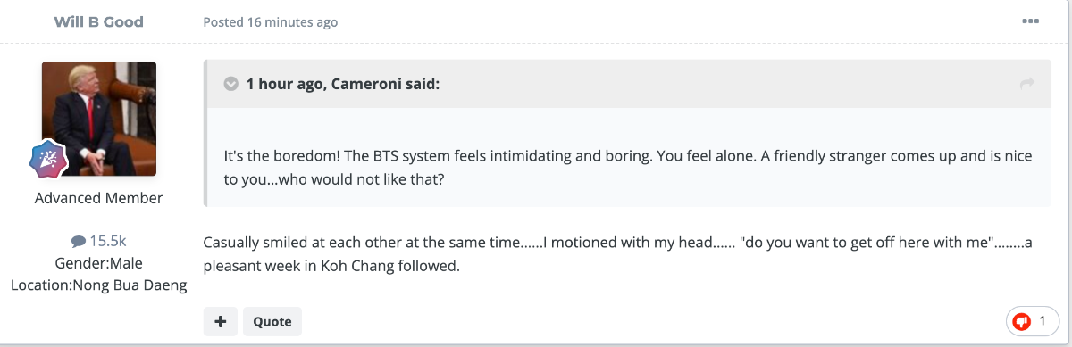 Check out his posts about wild nights with ladyboys