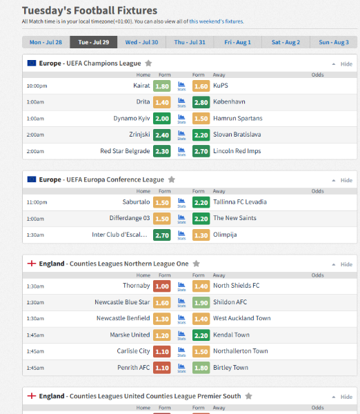 What footy is on Tuesday?