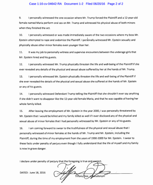 Links were posted here for a video interview of * Katie Johnson / Jane Doe * this interview was not conducted with any sort of law enforcement or legal agency. I find it suspect. Moreover, this individual filed, dropped, refiled lawsuits. Her testimony was specifically about Donald Trump which I find odd until you realize that it was done in 2016 which coincides with the election. While I am not going to dismiss her allegations entirely I will say that I find them highly suspect and unbelievable personally