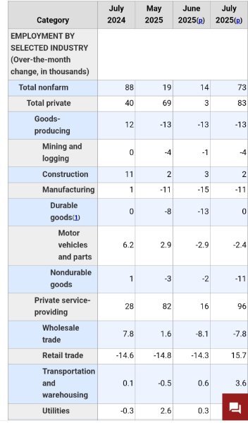 August 4, 2025Aug 4 Just now, candide said: You just confirmed how nonsensical your claims are. It's a balance. Numbers are positive for some sectors and negative for others. Check by yourself in the bls report. https://www.bls.gov/news.release/empsit.b.htm He insists Trump has an IQ of 156.....why?....because Trump said so......why would Trump lie? You need to give up on him.......save yourself.