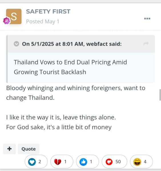 What I'd like to see is a link, posted by by @SAFETY FIRST, to his post that allegedly got 50 thumbs down emojis.