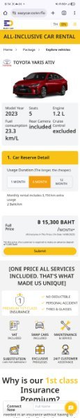 I would just rent with a company like easy car. 15k a month 1st class insurance and all repairs, swaps and maintenance included.