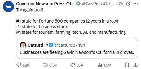 Left wing Newsom is turning California into socialist nation that business do not want to operate in. "The company has announced it no longer with "open or operate" retail outlets in Newsom's state." Meanwhile President Trump calls Newsom "pond scum." A fitting title and if you are from California, I pity you.