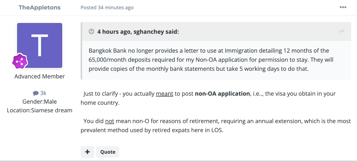 So I started monthly transfers and last year did extension with account statement from Bangkok Bank.