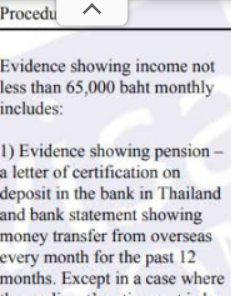 Retirement visa using the monthly income