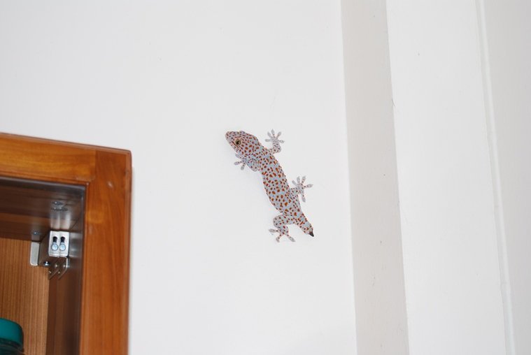 August 26, 2025Aug 26 5 hours ago, Mutt Daeng said: We also leave the jing jocks & Tokays alone. They really do "regulate" the bug population. At one stage we had 2 big Tokays living in the house; one under the fridge and one behind the (unmovable) TV stand. Both have now disappeared. Here is the one from the kitchen. The tails seem to come off easily. Ha MIL had a big one, tailless, lived behind her fridge......came out 2030 hrs on the dot every night....555