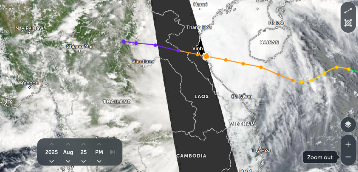 August 25, 2025Aug 25 36 minutes ago, mfd101 said: My observation from Accuweather's maps and (mostly inaccurate) forecasts - at least they're mostly inaccurate here in south Surin, the driest part of Thailand - is that characteristically these major monsoons spend most of their force when they hit the Vietnamese coast, and then V'nam & Laos and later Cambodia receive most of what remains of their strength. The attached satellite image is somewhat useless, but this one is tracking far north of Cambodia, in Laos. As you mentioned, they rapidly lose intensity after landfall. Once it skims the very far northwest of Thailand, it has already travelled over 500km overland. This one is a non-event for most of Thailand. Here's the best source of information for Western Pacific Typhoons. I've used this as my go-to source for information on typhoons for years, while in the Philippines, which gets more typhoons than anywhere else on the planet.