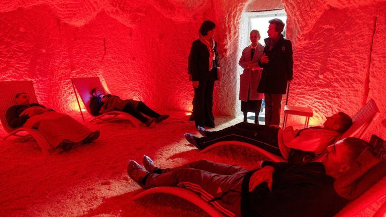 The Princess Royal met Ukrainian war veterans relaxing in a salt therapy room at a rehabilitation centre. Pic: PA© PA