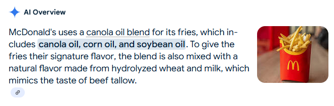 August 29, 2025Aug 29 Author 11 hours ago, Alan Zweibel said: 11 hours ago, save the frogs said: What synthetic fats is McDonald's using to fry its fries?