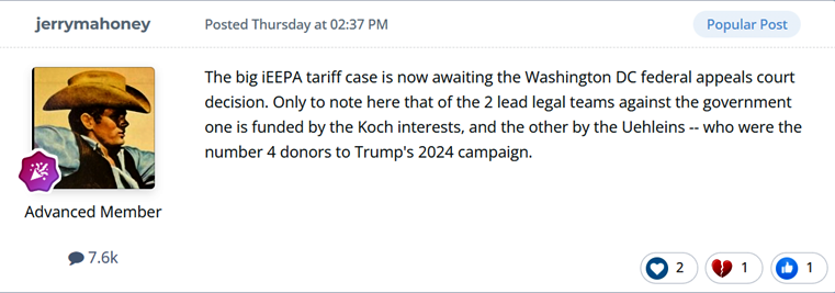 This is from the letter the DoJ attorneys sent to the Court 11 AUG after the conclusion of oral arguments:   There is no substitute for the tariffs and deals that President Trump has made.