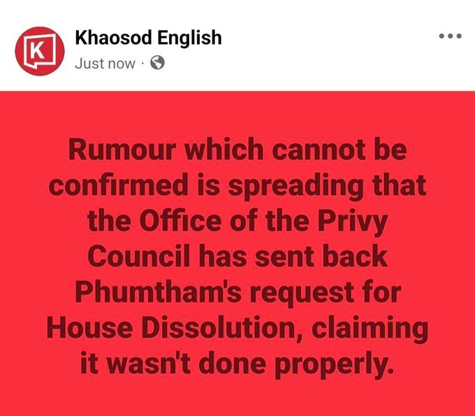 BREAKING: Caretaker acting PM Phumtham Wechayachai has requested HM the King to endorse the dissolution of the Parliament after Pheu Thai Party failed to ensure its PM candidate will be selected. #Thailand
