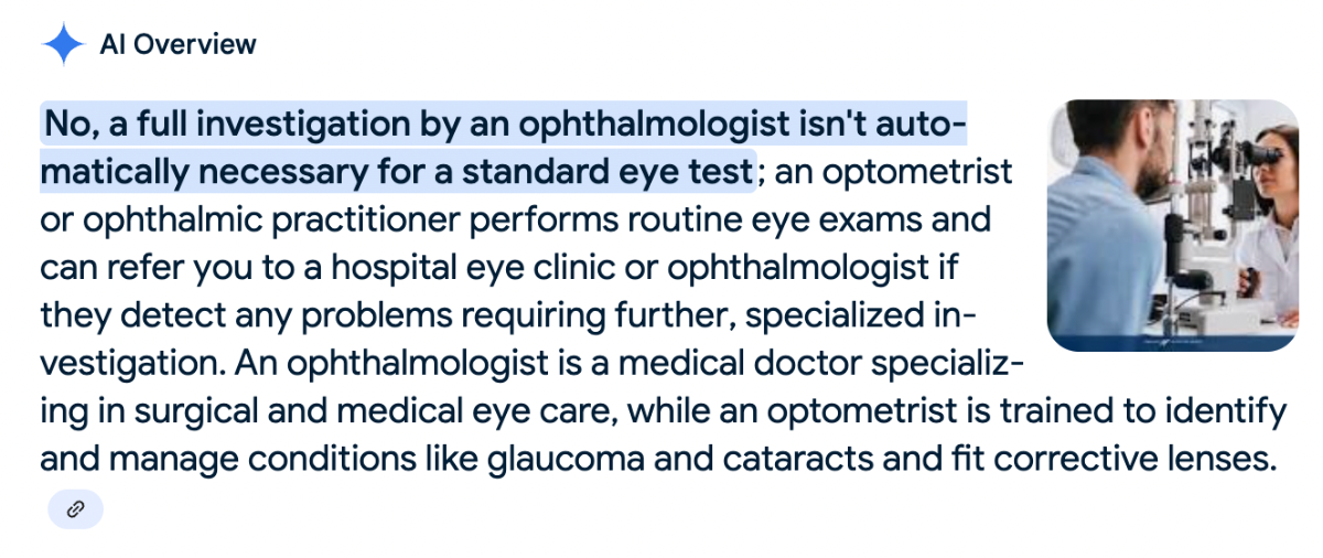 OP asks for a reasonably priced optician for a pair of glasses, and you’re recommending a medical screening… what next – a full-body MRI for someone with bunions?