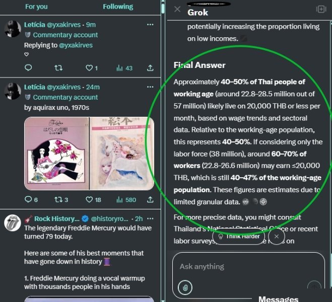 I wasn’t unaware of the broader context, but I asked Grok on X for insight. As shown in the attached response, was "40–50% of Thai people of working age (around 22.8–28.5 million out of 57 million) likely live on 20,000 THB or less and thus they are doing the undoable.
