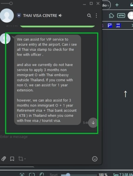 I was asking them about "safe entry check" and they replied with "We can assist for VIP service to secure entry at the airport. Can i see all Thai visa stamp to check for the fee with officer "