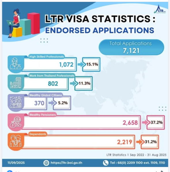 I am surprised that the LTR has attracted/accepted ONLY 7000 people in 3 years! It is a fantastic visa for 50,000 baht (or 5000 baht/year over its 10-year life).  Why only 7000 LTR Visa holders?