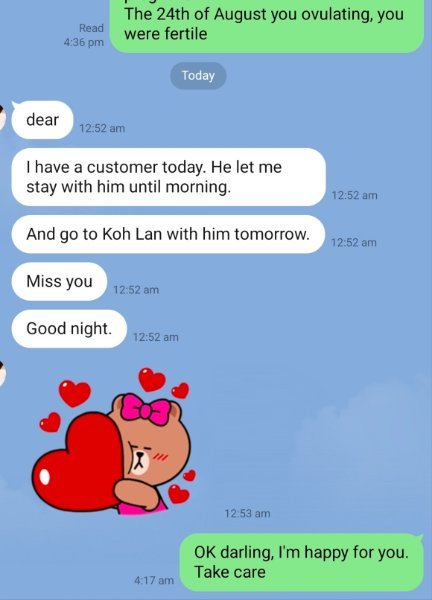 Blah has now been living with me for a couple of weeks, we have sex everyday, I buy her food when she is with me and at times we have a few beers together. I give Blah 1 or 2 hundred baht most days so she can travel to and from her workplace.