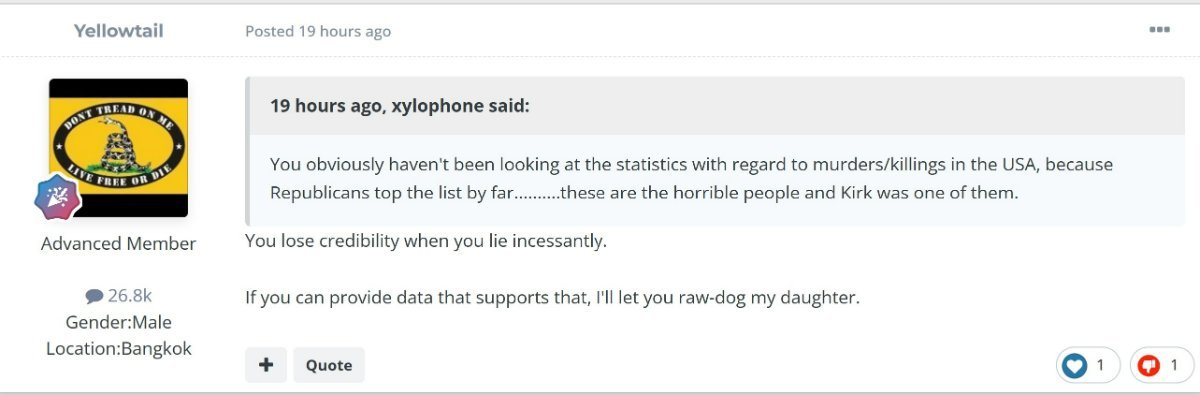 The lost severely in elections and still they try their best to make everything bad that supports or believes in TRUE democracy. Or at least believes in the truth and wants The USA to be better. This is your 2nd post about KIrk and his death. Your last post saying how happy you are that someone took action by killing him says enough about your demeanor and rhetoric. NO shame. You try to make what happened into a good thing and now you are using some HARRIS love group The Seneca group. The vileness comes from you. Others mourn the needless death of Kirk caused by a killer who used his hate to take him out. Others see the violence and hate that is coming from people (like you) as a bad thing. Unbelievable you have swayed others to zoom in on your outlook at premeditated murder as a good thing.