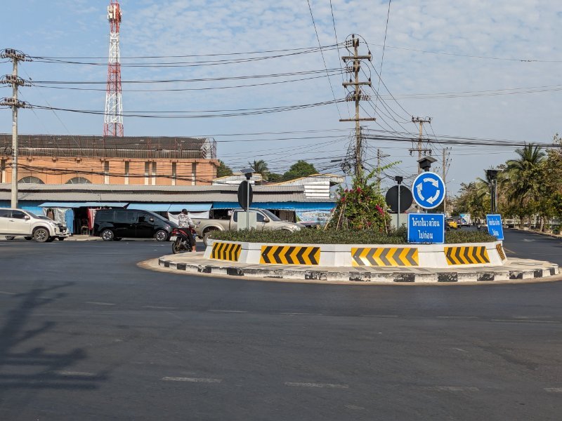 Roundabouts.  They only work if UK-style rules apply, but using French rules plus Thai style results in total chaos.