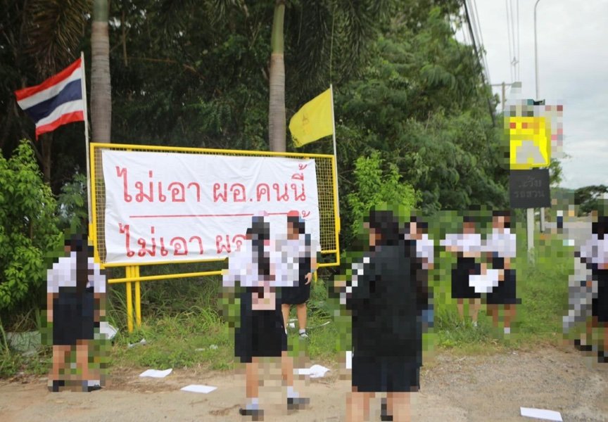 A dispute at a school in Bang Lamung District, Chonburi, has escalated into a protest involving students and teachers. On 26 September 2025, around 20 students staged a demonstration, installing a large banner reading “No to this Principal” and distributing leaflets accusing the principal of various misconducts. This followed a request from 20 teachers and staff to be transferred due to alleged abusive behaviour by the principal.