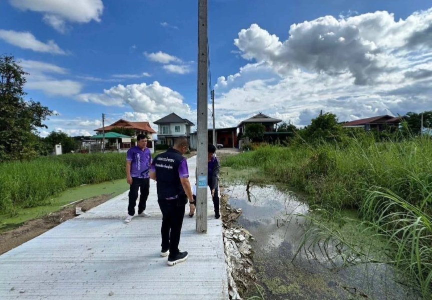 Residents in Phitsanulok raised safety concerns after an electricity pole was found partially obstructing a newly built concrete road in Ban Khlong subdistrict. The pole protrudes 50 centimetres into the carriageway of Damri Phatthana Soi 8, prompting fears of accidents. District and municipal officials inspected the site on 24 September and confirmed the issue.