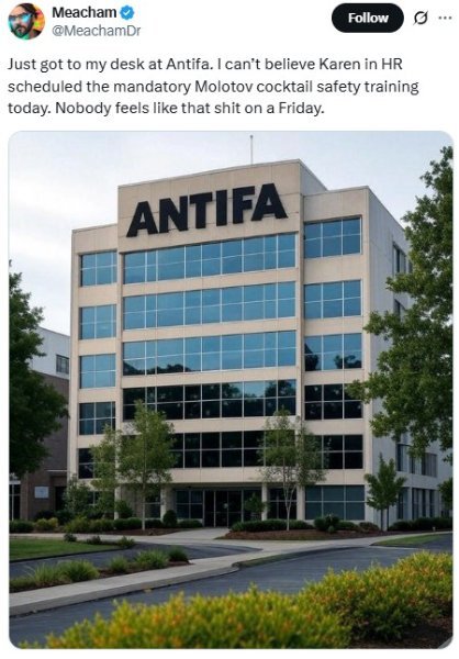 Ahhh, Antifa. Another MAGA dog whistle. Listening to the Trump fanboys on AN one would think they were right up there with SPECTRE wrt to power, reach and cleverness.😂
