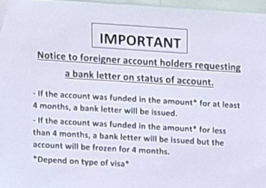 Where that bank (Bangkok Bank) has placed added condition on providing the "Bank Letter" that immigration requires.