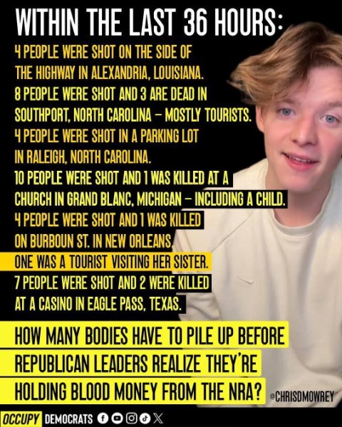 What is wrong with the USA and its people? Why are they so intent on killing each other and engaging in idiotic accusations when it occurs? It truly has become a primitive uncivilized nation of savages. No one is safe. It is not an urban thing either. Just a few days ago,  a 32 year old tourist was killed in a drive by shooting in Sheboygan, WI while on a golf holiday. He  had just welcomed his first child in August. The town is mostly white and has a population of 8,600.