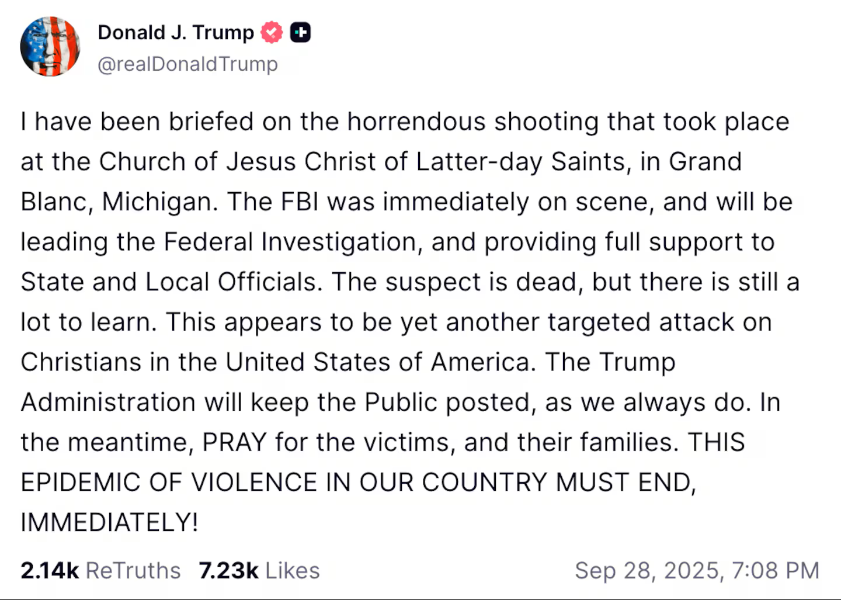https://nypost.com/2025/09/28/us-news/michigan-mormon-church-on-fire-as-multiple-victims-reported-in-mass-shooting-police/
