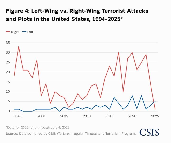 • Interesting CSIS study mentioned in the OP, indeed!   The number of left-wing terrorist attacks and plots has increased from 1 in 2024 to 5 in 2025.    https://www.csis.org/analysi