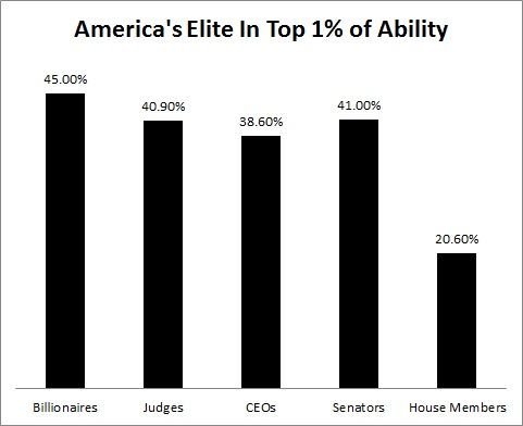 Individuals were deemed to be in the top one percent of ability if they attended an undergraduate or graduate school that had extremely high average standardized test scores that put the average person in the top one percent (see Table 1 for a complete list of “elite schools” that made the cut). Researchers have determined that standardized tests, such as the SAT and ACT, are good measures of general intelligence, or g. For more detail on the method used, including its limitations, please read the paper, published in the journal Intelligence.