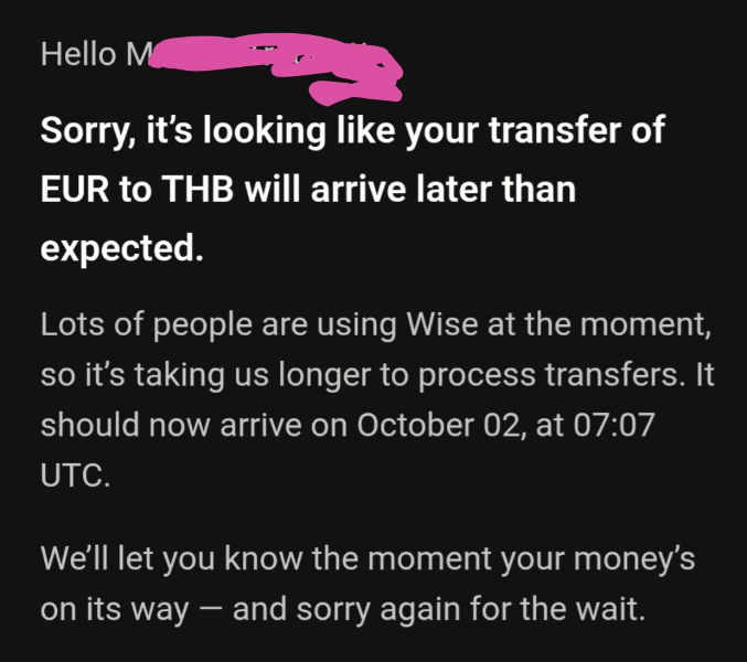 Especially if you're with K Bank. Their app often says it's arrived before Wise confirms it's been sent.