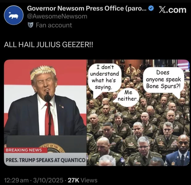 October 2, 2025Oct 2 Popular Post 2 minutes ago, Yellowtail said: Defend it against what, leftists that want DEI and climate change running the military? I thought it was great, Well glad your happy the VAST majority are appalled.