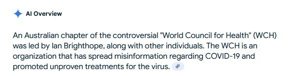 But even with all those facts, let's be generous and see just what Brighthope's bio says on the World Council for Health Australia's website. Is he the kind of guy you want to be getting COVID and vaccine guidance from?