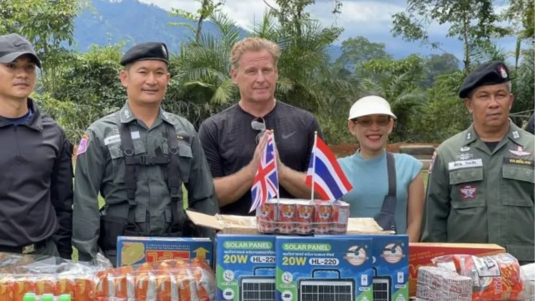 A British actor has traveled to Thailand's eastern border to donate solar panels and supplies to the Border Patrol Police. Mark Shelley, accompanied by his Thai wife, Naphatwarun Sirirattanasap, brought nine solar panel sets, dried food, snacks, and bottled water to officers in Trat province. This gesture aims to boost the morale of police stationed near the Cambodian border, where tensions have been rising.