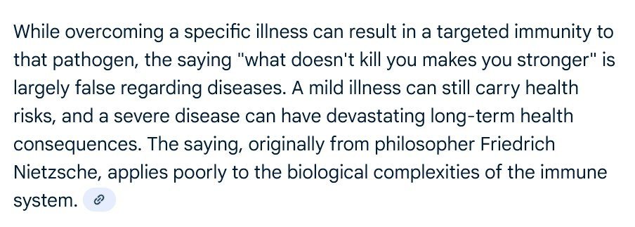 That may have some meaning in life about overcoming challenges and adversities. But viruses and diseases don't work that way....