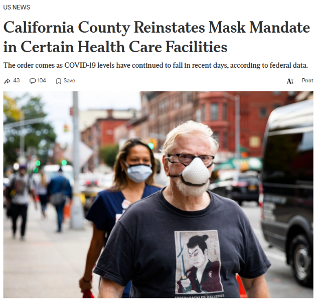Source: https://www.theepochtimes.com/us/california-county-official-reinstates-mask-mandate-in-certain-health-care-facilities-5924896