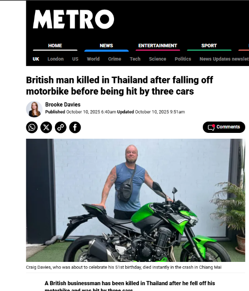 British Motorcyclist Killed in Chiang Mai Crash Horror