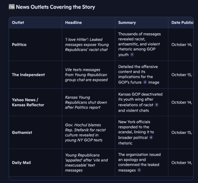 “Great. I love Hitler,” Giunta responded. Dwyer reacted with a smiley face'.   https://www.politico.com/news/2025/10/14/private-chat-among-young-gop-club-members-00592146